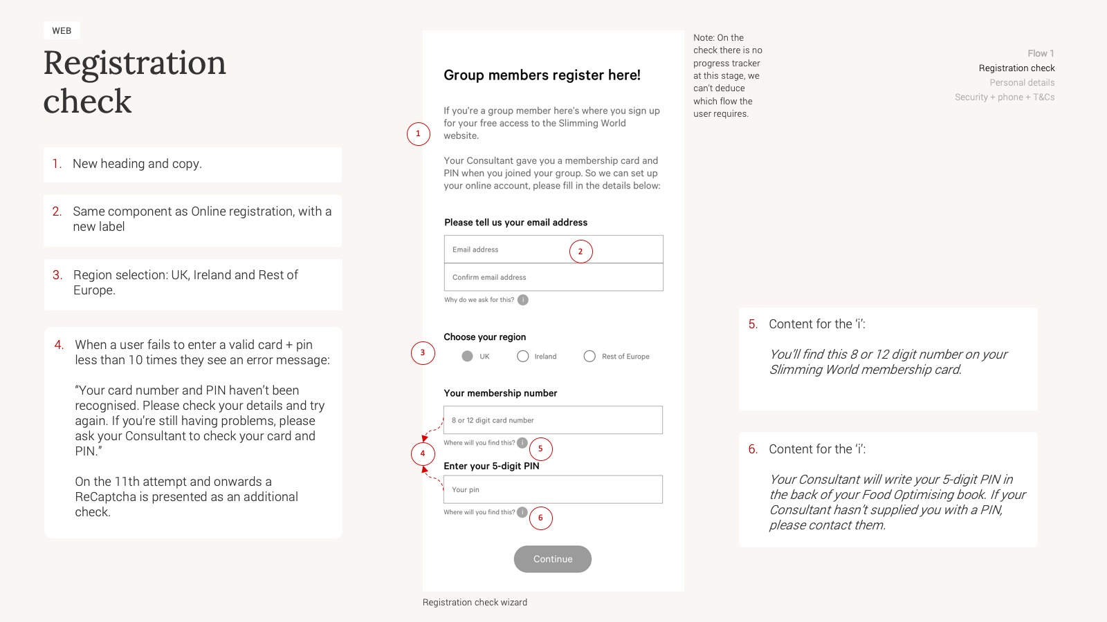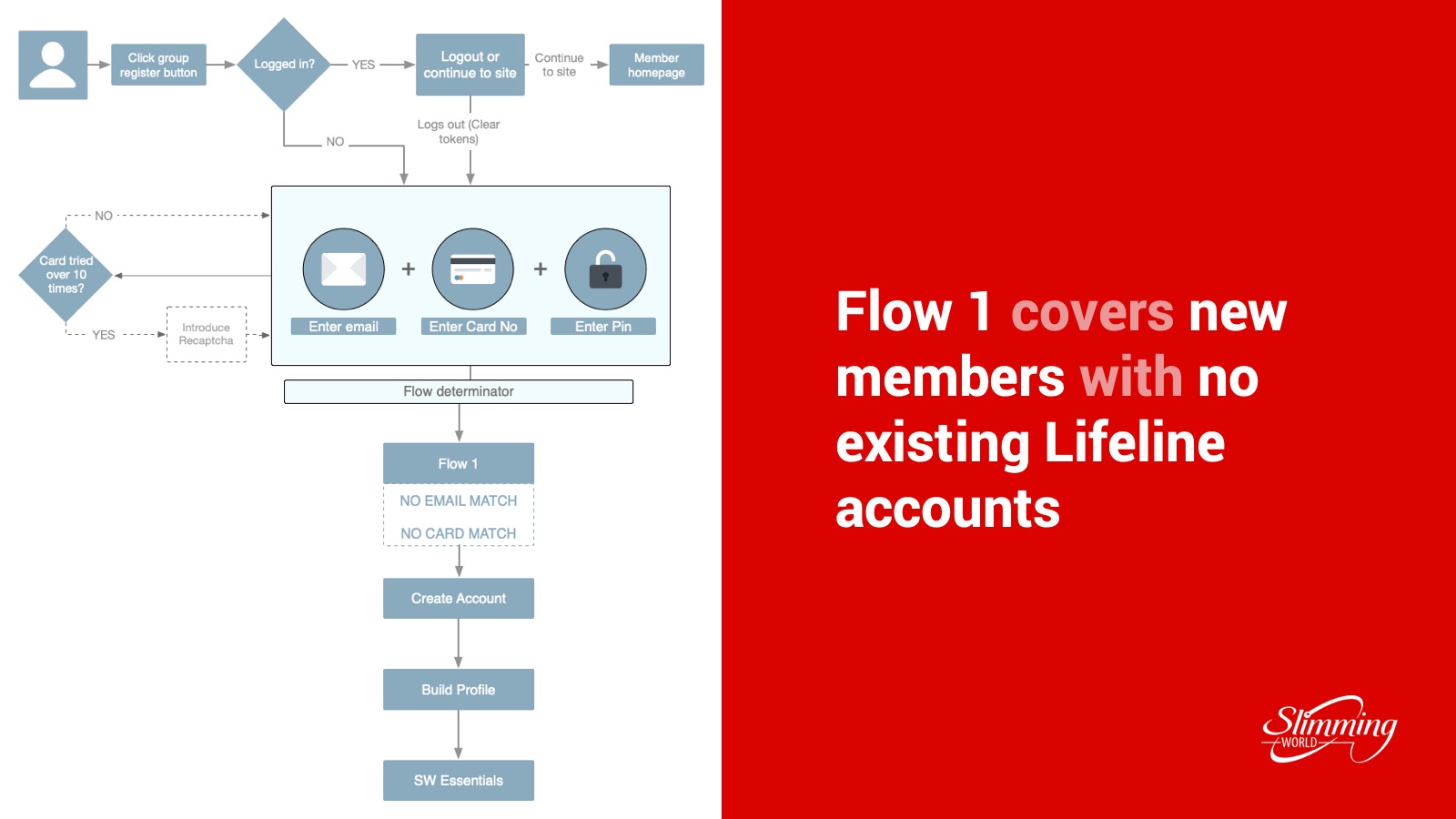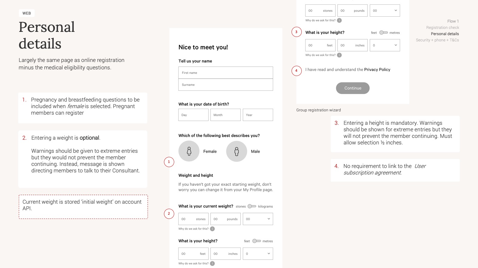 A big part of my initial work involved mapping and documenting current-as-is journeys for our Online members who were currently using the platform. This gave us a starting point to go on and understand how these flows would need adapting to handle Group members. I setup meetings with product owners and stakeholders to run through the current-as-is flows, to confirm accuracy, as well as ideas on how Group adaptations could fit in. These meetings also took place with the wider digital team to gain understanding of business and technical constraints, which in turn helped me develop the initial concepts.